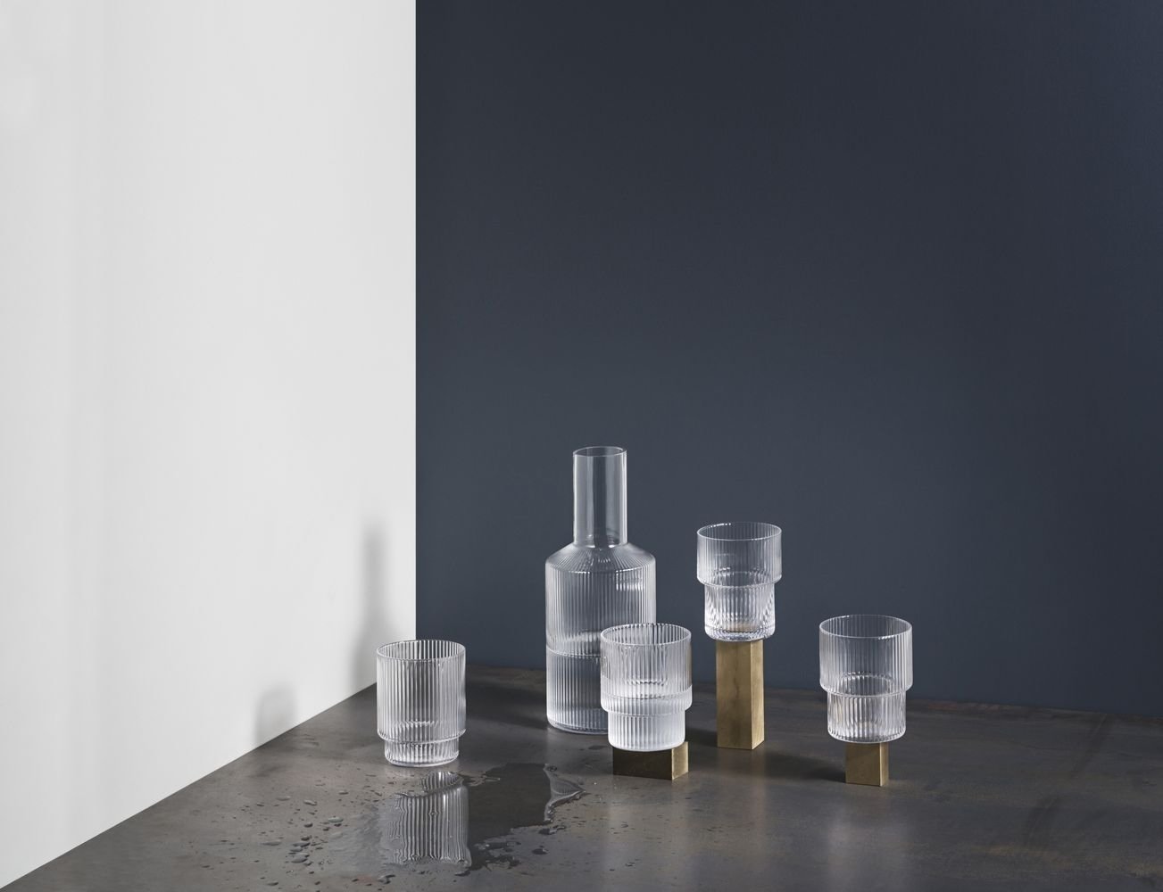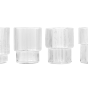 Die Ripple Gläser des dänischen Erfolgsherstellers ferm LIVING zeichnen sich besonders durch ihre schöne geriffelte Oberfläche sowie durch ihre handliche Form aus. Dabei besteht das Set aus vier Gläsern, welche alle eine andere Form aufweisen. In der Summe jedoch ergeben sie ein harmonisches und zeitloses Bild. Die vertikalen Wellen der Oberfläche, gepaart mit den geometrischen Formen der einzelnen Gläser sorgen für eine einzigartige Dynamik. Die Gläser fassen 250 ml Flüssigkeit und sind zudem spülmaschinenfest. Sie eignen sich daher nicht nur gut für Festlichkeiten, sondern sind, dank der einfachen Pflege, ebenfalls alltagstauglich. Zum platzsparendem Verstauen der Ripple Gläser, können sie praktischerweise gestapelt werden. Der Bestseller von ferm LIVING wird auf jeder reich gedeckten Tafel zu einem Eyecatcher. Kombinieren Sie zu den Ripple Gläsern die passende Rippel Karaffe um das Erscheinungsbild Ihres Tisches abzurunden.