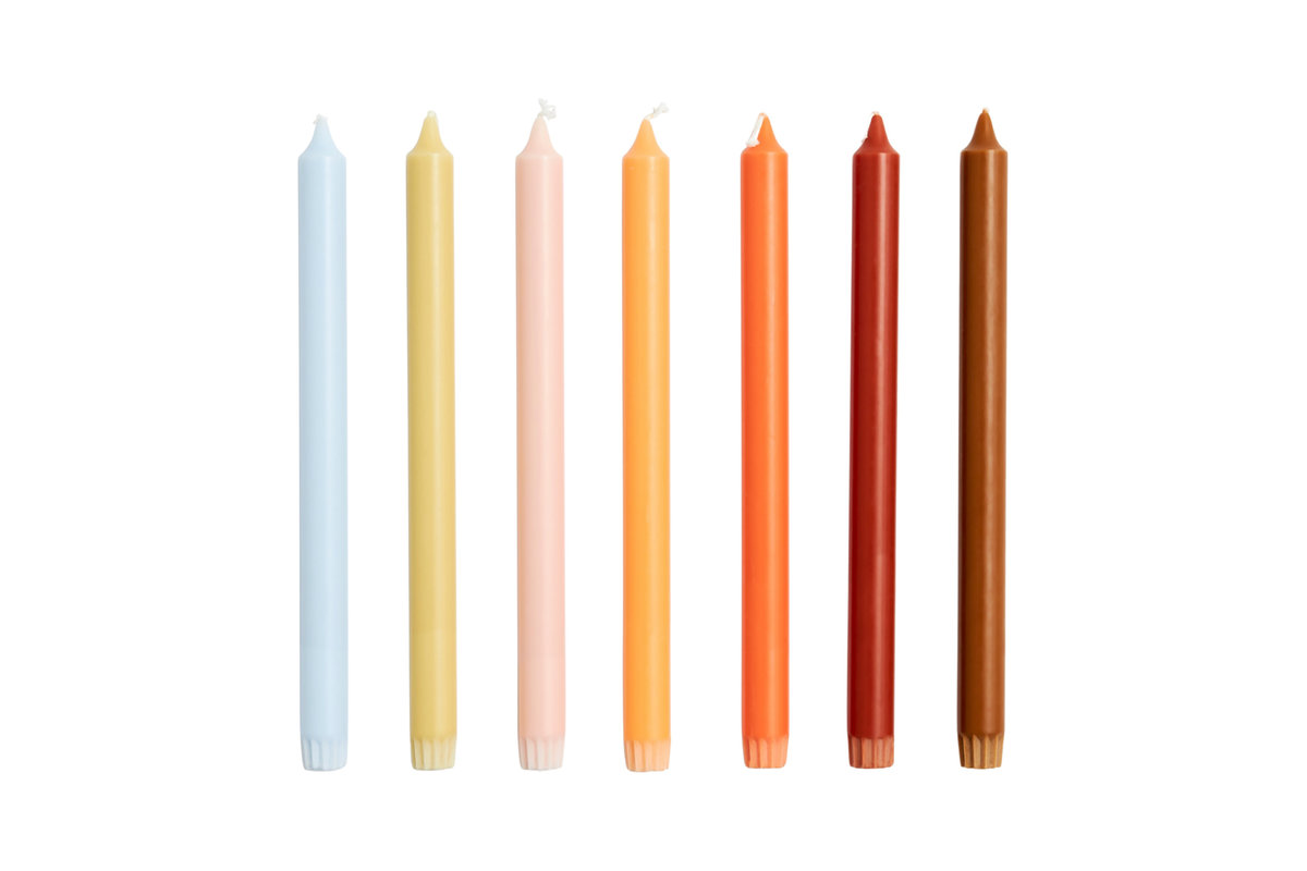 Mithilfe des Gradient Kerze 7er Set von HAY können Sie Ihre Kreativität auf eine neue Ebene heben und eine Vielzahl von einzigartigen Farbkombinationen und Formen kreieren! Mit diesem 7er Set, das sich Rainbow nennt, haben Sie Zugang zu einer Fülle von harmonischen und erdigen Farbtönen, die Ihre Sinne begeistern werden. Diese einzigartigen Kerzen werden in einer handgefertigten Manufaktur in Italien hergestellt. Ob entzündet oder nicht, sie sind eine wunderbare Möglichkeit, um jeden Tisch, jede Fensterbank und jede Ablagefläche schnell und einfach mit ästhetischer Schönheit zu versehen.