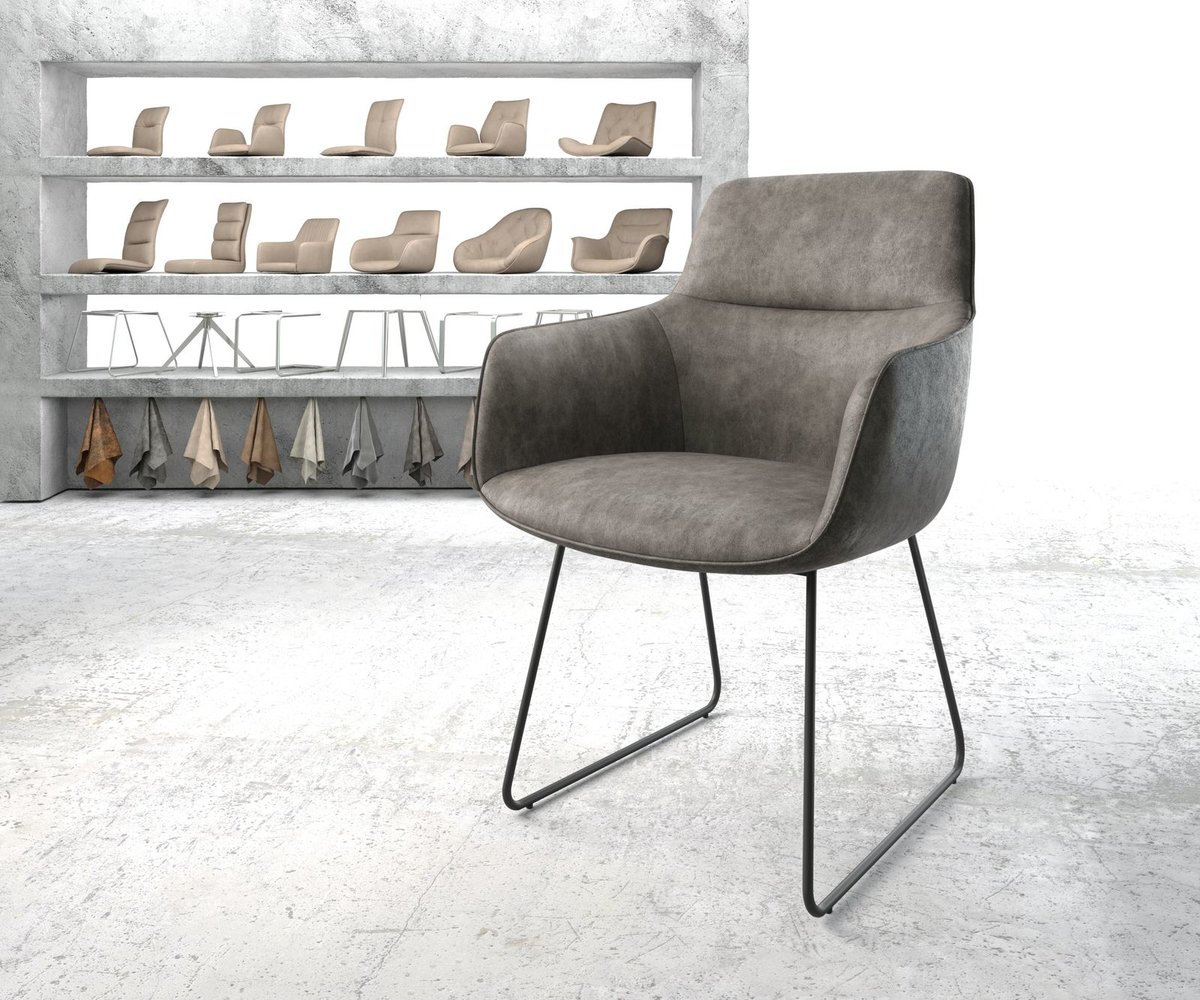 DELIFE Armlehnstuhl Pejo-Flex Anthrazit Vintage Kufengestell Schwarz, Esszimmerstühle