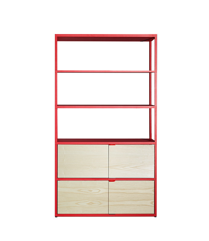 Ästhetische Aufbewahrungslösungen: Das New Order Schiebetür Regal von Hay wurde gemeinsam mit dem Münchener Designer Stefan Diez entwickelt. Dabei könnte es wandelbarer nicht sein: Es besteht aus einer flexiblen Kombination aus geschlossenem und offenem Stauraum in einem Regalsystem und bietet damit eine funktionale und ästhetische Bücherregal- und Aufbewahrungslösung für alle Wohn- oder Büroräume. Das integrierte Regal verfügt über Holztüren und -paneele, die Sie flexibel auf dem Regalboden platzieren können, wo sie Ihnen am zweckdienlichsten erscheinen. Der Einsatzort der New Order Systeme ist aufgrund der multifunktionalen Eigenschaften frei wählbar – Bücherregal, Organisation von Papieren und Akten, Stauraum für Spielzeuge oder Küchenutensilien – ob im Raum mit Zugriff von allen Seiten oder an der Wand – Ihre vier Wände bestimmen die gewünschte Funktion. Die Holzoptik der Schiebetüren bricht die industrielle Nüchternheit des Regals mit natürlicher Wärme. Sowohl die Aluminium- als auch die Furnierelemente sind in verschiedenen Farboptionen erhältlich und können so modifiziert werden, dass das Aussehen an Ihren Wohnstil angepasst wird. Mit der New Order Kollektion können Sie unendliche Kombinationen und Anwendungen konfigurieren – zusätzliche Elemente zur Erweiterung finden Sie unter Kollektion. Das Regal ist aus stabilem Aluminium gefertigt, wird zerlegt geliefert und ist leicht zu montieren.