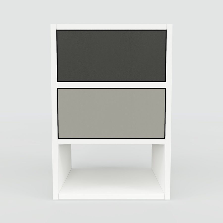 Dein eleganter Design Nachtschrank in Grau. Stabile Verarbeitung und elegantes Design.Böden: Weiß, Türen: konfigurierbar, Schubladen: Grau. Abmessung: Breite 41 x Höhe 60 x Tiefe 34. Material: Grau.MYCS Nachtschränke sind jederzeit mit unserem Konfigurator individuell flexibel erweiterbar um neue Farben und Module, wie z.b. Fronten, Wände oder Böden. Auch Höhe und Breite sind beinahe ohne Einschränkungen anpassbar. Optional sind hochwertige Multiplex Schubladen & Push-To-Open Türen möglich. Ein unverzichtbares Möbel für dein Schlafzimmer.Die Lieferung erfolgt innerhalb weniger Wochen.