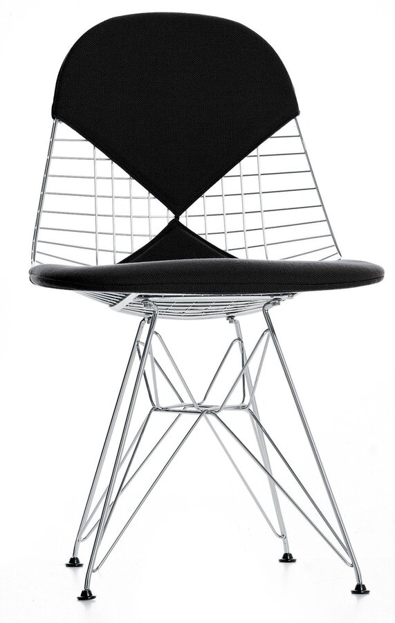 Der Wire Chair DKR ist aus beschichtetem Stahl gefertigt. Das Design ist leicht und transparent. Durch diese dezente Optik passt der Stuhl fast in jede Umgebung. Die Sitzfläche und die Rückenlehne sind zu einer Schale verbunden, wodurch er auch ohne Polsterung sehr bequem ist. Dieses Modell verfügt allerdings über eine zusätzliche Polsterung, die aufgrund ihrer außergewöhnlichen Form auch Bikini genannt wird. Sie verleiht dem Stuhl noch einen letzten besonderen Touch. Das schwarze, pulverbeschichtete Model ist außerdem für den Außenbereich geeignet. Bitte beachten Sie, dass Vitra seine Stuhlhöhen anpasst. Wir führen den Wire Chair mit der neuen Standardhöhe 43 cm in unserem Shop. Auf Anfrage können Sie bis Ende 2018 auch noch den Wire Chair mit der alten Sitzhöhe 42 cm bestellen.