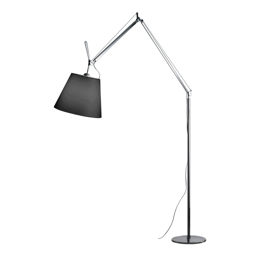 Die Stehleuchten Tolomeo Mega Terra von Michele de Lucchi bietet aufgrund ihrer großzügigen Proportionen und Dank des Leuchtenschirms eine ganz besondere Lichtstimmung. Das große Pendant zur Tolomeo Schreibtischleuchte, bietet den Vorteil zwei verschiedener Lichtquellen. Zum einen erzeugt der Schirm einen gerichteten, direkten Lichtkegel nach unten, zum anderen entsteht ein passives, warmes Raumlicht. Wegen ihrer großen Reichweite von 170 cm eignet sich die Tolomeo Mega Terra auch hervorragend für die Beleuchtung von Tischen und Sofaecken. Die Leuchte ist in insgesamt drei verschiedenen Schirmvarianten und drei Größen erhältlich. Der Schirm besteht aus kunststoffverstärktem- Gewebe, je nach Material erzeugt der Schirm eine andere Lichtstimmung. Der Sockel, die ausrichtbaren Arme, sowie die Gelenke und die Halterungen werden aus glänzendem Aluminium gefertigt. Der Leuchtenschirm hängt bei der Tolomeo Terra wie eine Art Pendel lose in seinem Gelenk, so dass, egal in welche Position Sie den Arm verstellen, der Schirm immer im Lot nach unten zeigt.