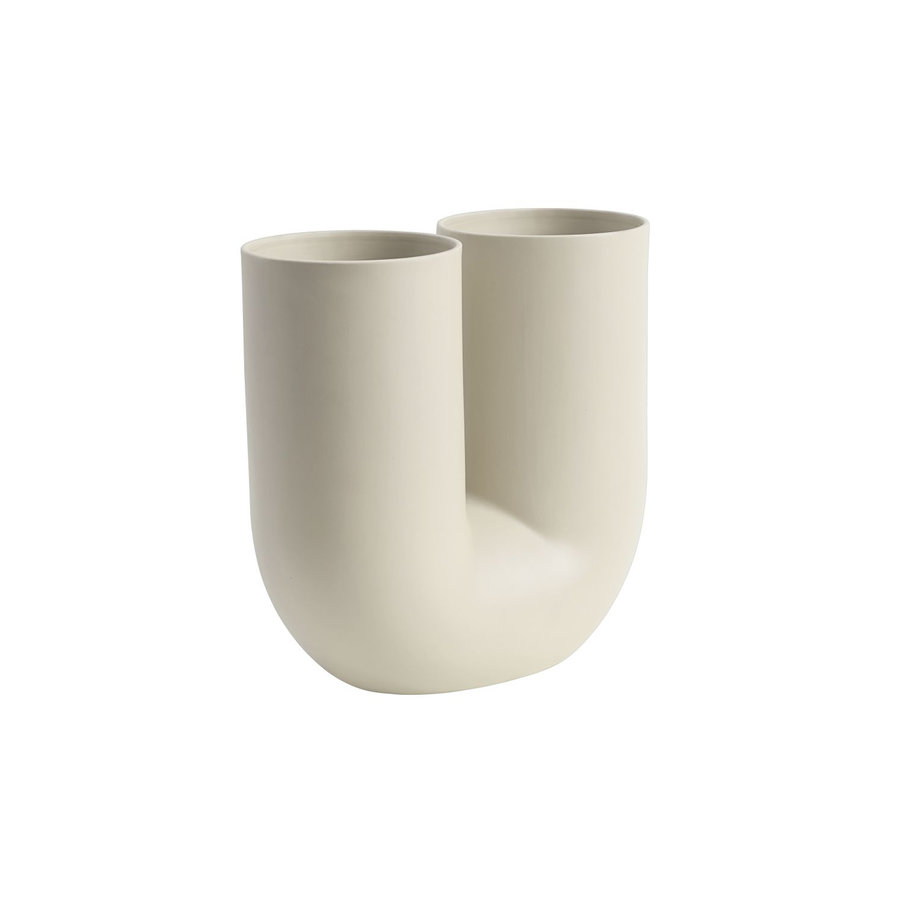 Die Kink Vase von Muuto, entworfen vom renommierten Earnest Studio, vereint auf einzigartige Weise zeitgenössisches Design mit traditioneller Handwerkskunst. Diese Vase ist nicht nur ein funktionales Objekt, sondern auch ein Kunstwerk, das jeden Raum mit Eleganz und Raffinesse bereichert. Hergestellt aus hochwertigem, pigmentiertem Porzellan, besticht die Kink Vase durch ihre außergewöhnliche Qualität und Langlebigkeit. Die doppelte Öffnung verleiht ihr eine unkonventionelle und moderne Form, die sofort ins Auge fällt und zum Gesprächsthema wird. Die Kink Vase ist in verschiedenen Farben erhältlich, sodass Sie die perfekte Option für Ihre individuelle Einrichtung finden können. Bitte beachten Sie, dass die Kink Vase nur von Hand gewaschen werden sollte, um ihre Qualität und Schönheit zu erhalten. Ihr einzigartiges Design und ihre hochwertige Verarbeitung machen sie zu einem Schmuckstück für Ihr Zuhause oder ein besonderes Geschenk für Ihre Liebsten.