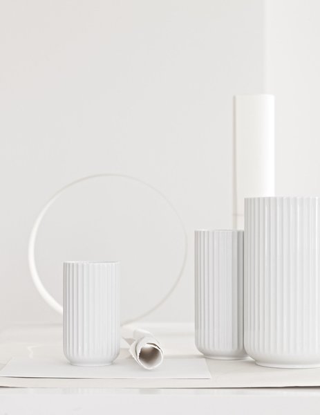 Als sie 1936 ursprünglich entworfen wurde, stand die Lyngby-Vase im krassen Gegensatz zu den klassischen Porzellantraditionen der damaligen Zeit. Die Lyngby-Vase, in ihrem Design inspiriert von der funktionalen Bauhaus-Bewegung in Deutschland, zeichnet sich durch ihre klaren Formen und ihre Geradlinigkeit aus. Aufgrund der hohen Nachfrage auf Trödelmärkten und in Antikläden begann eine Reproduktion der Lyngby-Vase im Jahr 2011. Seither ist die Vasenfamilie kontinuierlich gewachsen. Originale mit handgedrucktem "Porcelænsfabrikken Danmark - Lyngby Porcelæn" Monogramm auf der Unterseite.