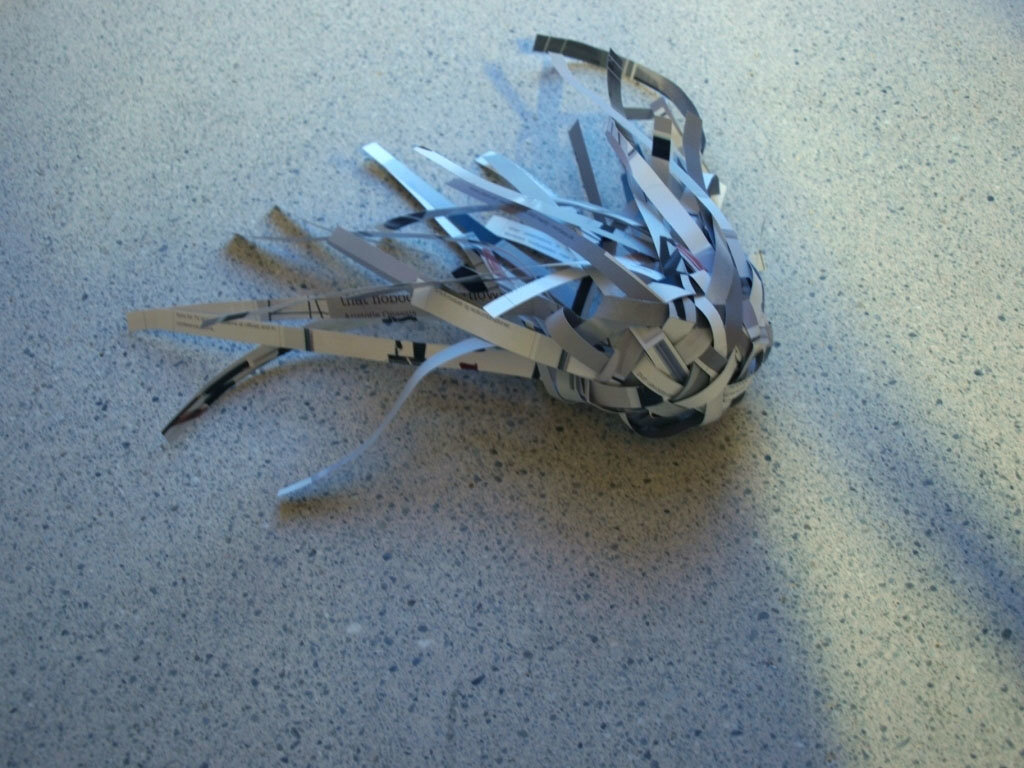 bild 2: das papier längs in ca. acht millimeter breite streifen schneiden. (regelmässig breite papierstreifen lassen sich besser verweben)