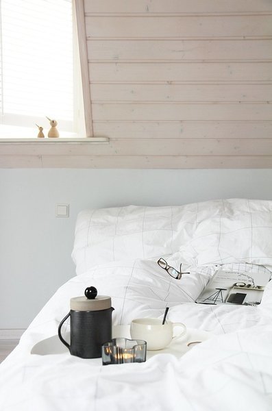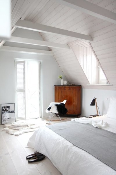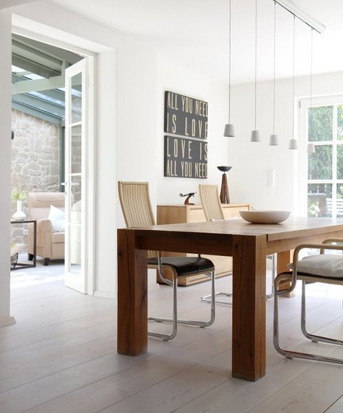 Besonders wichtig waren uns Licht, Helligkeit und Weitläufigkeit trotz der kleinen Räume und teilweise niedrigen Decken. Obwohl wir nur enge bauliche Möglichkeiten hatten und auch die Denkmal-, bzw. Ensembleschutz-Auflagen es nicht gerade einfacher gemacht haben, haben wir die gewünschte Weitläufigkeit mit den bis zu zwölf Meter raumlangen Douglasien- Dielen ganz gut hinbekommen. Außerdem wichtig waren uns ein gutes Raumklima, eine ruhige Wohnatmosphäre und egal aus welchem Fenster: der Blick ins Grüne! Wir haben beide ein großes Bedürfnis nach Ruhe und Entschleunigung.