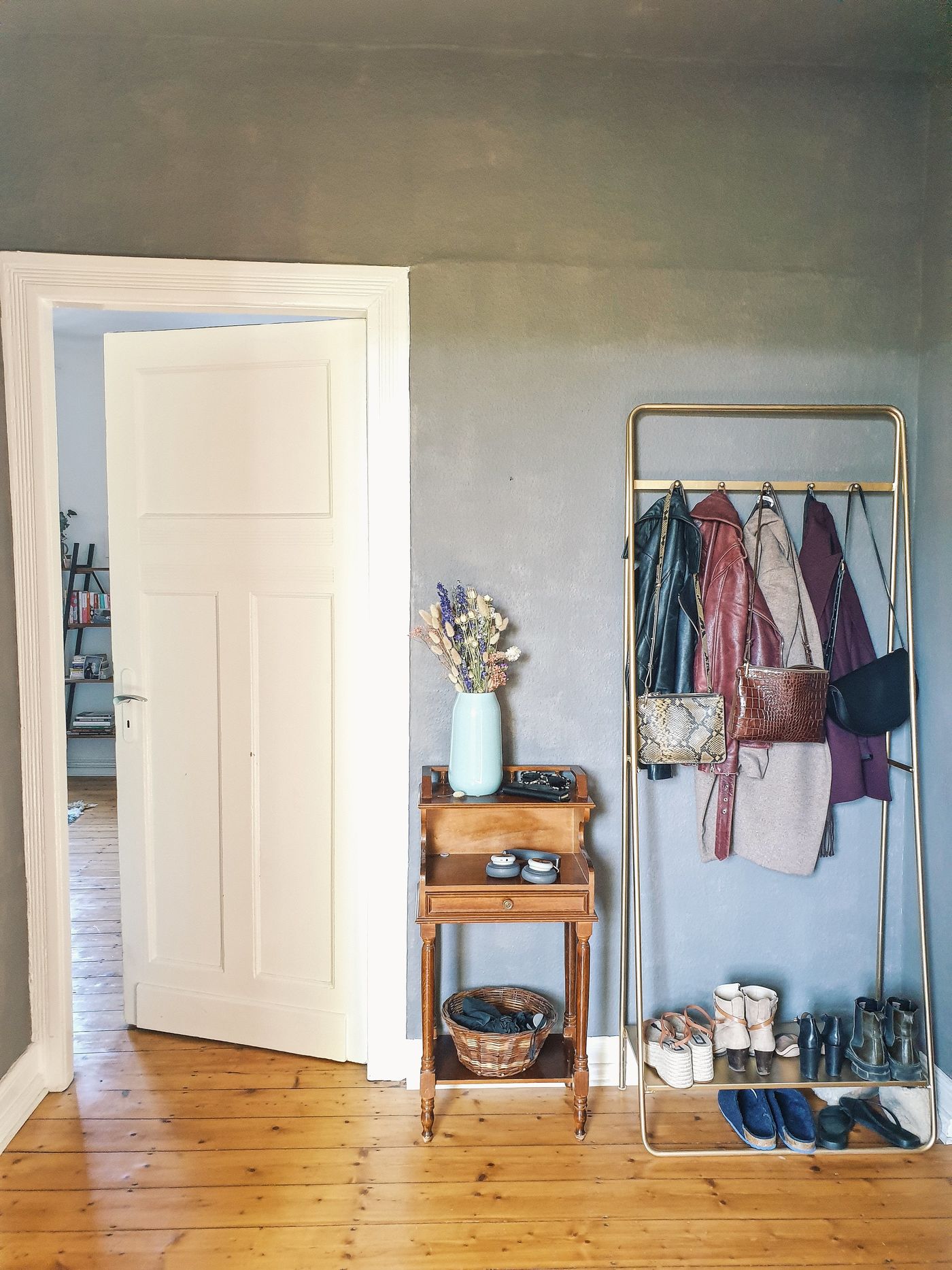 Meistens bedarf es im Flur aber platzsparender Lösungen. Schlanke Wandgarderoben oder schöne Garderobenhaken sind in kleinen Räumen empfehlenswert. Darunter bleibt Platz für Schuhe oder Aufbewahrungskörbe. Es gibt schöne Designklassiker-Garderoben, zum Beispiel die Hang-it-All von Vitra. Das Design von Charles und Ray Eames von 1953 ist nicht nur praktisch, sondern in jedem Flur ein schöner Hingucker.