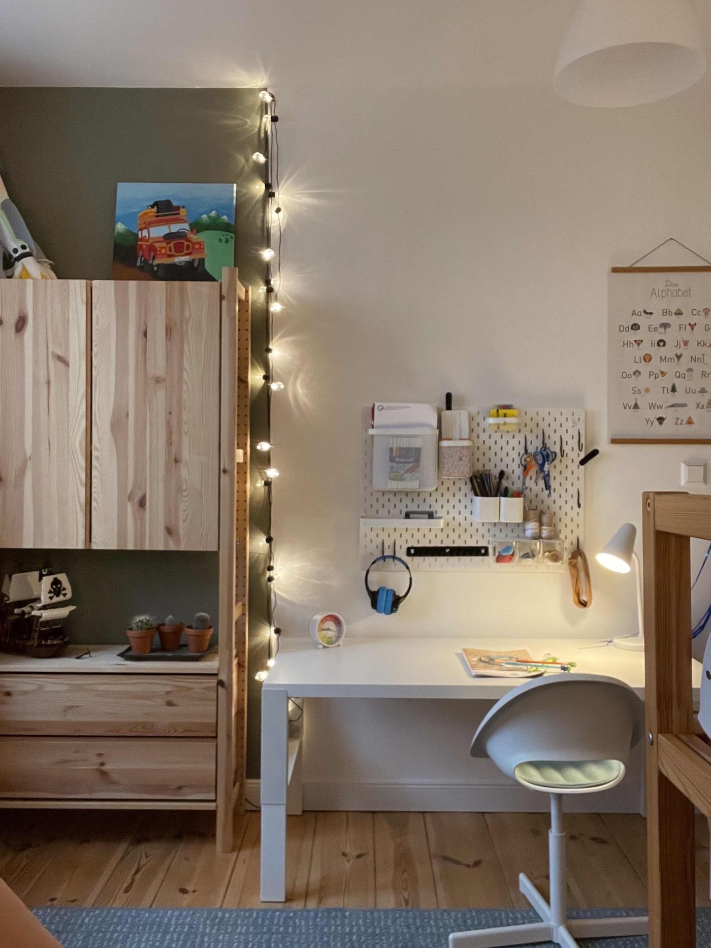 Ikea-Hacks für individuell gestaltete Kinderzimmer machen besonders viel Spaß, weil du deiner Fantasie einfach freien Lauf lassen kannst. Integriere zum Beispiel das Lieblingsbuch oder den Lieblingsfilm deines Kindes in deine DIY-Designs. So wird ein simples Stockbett zur handbemalten Feuerwehr mit Rutsche. Oder befestige bunte Boulder in der Rückseite des Betts und mache das Kinderzimmer im Handumdrehen zum aufregenden Indoor-Spielplatz. Ausrangierte Kommoden werden zu Kaufläden, Küchen oder zur gemütlichen Kuschelecke mit kleinem Bücherregal transformiert. Selbstverständlich kannst du auch Hängelampen und Stehlampen mit Puppen, Sandkastenförmchen oder Legosteinen individuell und farbenfroh gestalten. Hocker und Sessel überziehst du einfach mit bunten Stoffen und fügst ihnen witzige Details wie beispielsweise Hasenohren an der Lehne hinzu. Wenn deine Kinder auch gerne im Wohnzimmer oder auf der Terrasse spielen, versiehst du Miniatur-Küchen oder Kaufläden einfach mit Rollen. Eine Bremse sorgt für zusätzliche Sicherheit und garantiert, dass die stylischen Kindermöbel während des Spielens nicht verrutschen.