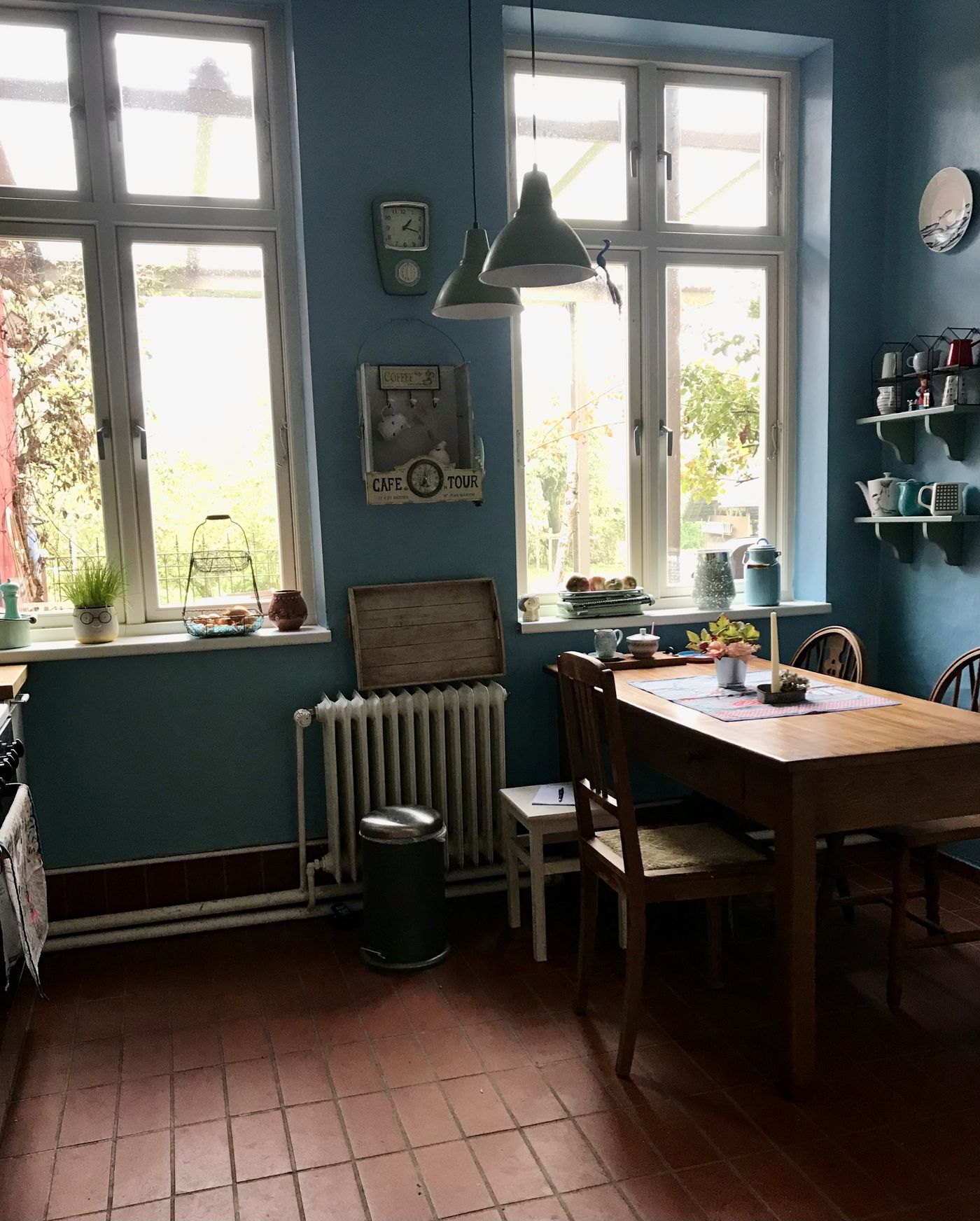 Stilecht: Dekoriere deine Küche mit einer alten Küchenwaage oder mit Milchkännchen, die in zarten Pastelltönen am schönsten sind. Das passende Geschirr ist filigran und verspielt. Polka Dots, Ornamente oder Blümchen sorgen für den besonders authentischen Look. Dekorativ und retro ist zudem eine alte Brotdose aus Holz oder eine Vintage-Thermoskanne. Für ein frisches und freundliches Finish sorgen Blumen oder eine kleine Topfpflanze wie beispielsweise ein Usambaraveilchen.