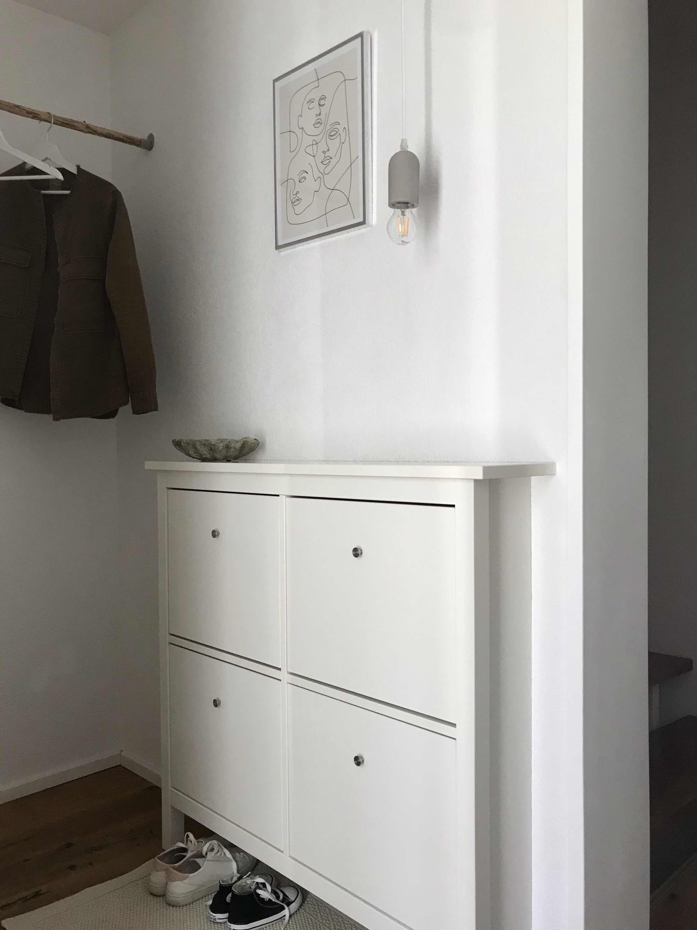 Eine beliebte Schuhschrank-Variante im Flur sind Schränke mit Klappfunktion. Es gibt sie unter anderem schon für kleines Geld bei IKEA. Ihr Vorteil: Durch eine geringe Tiefe beanspruchen sie wenig Platz und eignen sich damit auch für einen schmalen Flur. Je nach Fächerzahl passen in eine Klappe des Schuhschranks zwischen zwei und vier Paar Schuhe. Der Schuhschrank kann wie ein Sideboard an der Wand stehen oder schwebend befestigt werden. Sitzbänke mit integrierter Schuh-Ablage sind auch eine schöne Alternative. Im Sitzen findet der Schuh oftmals schneller an den Fuß - und den Rücken schont es auch.