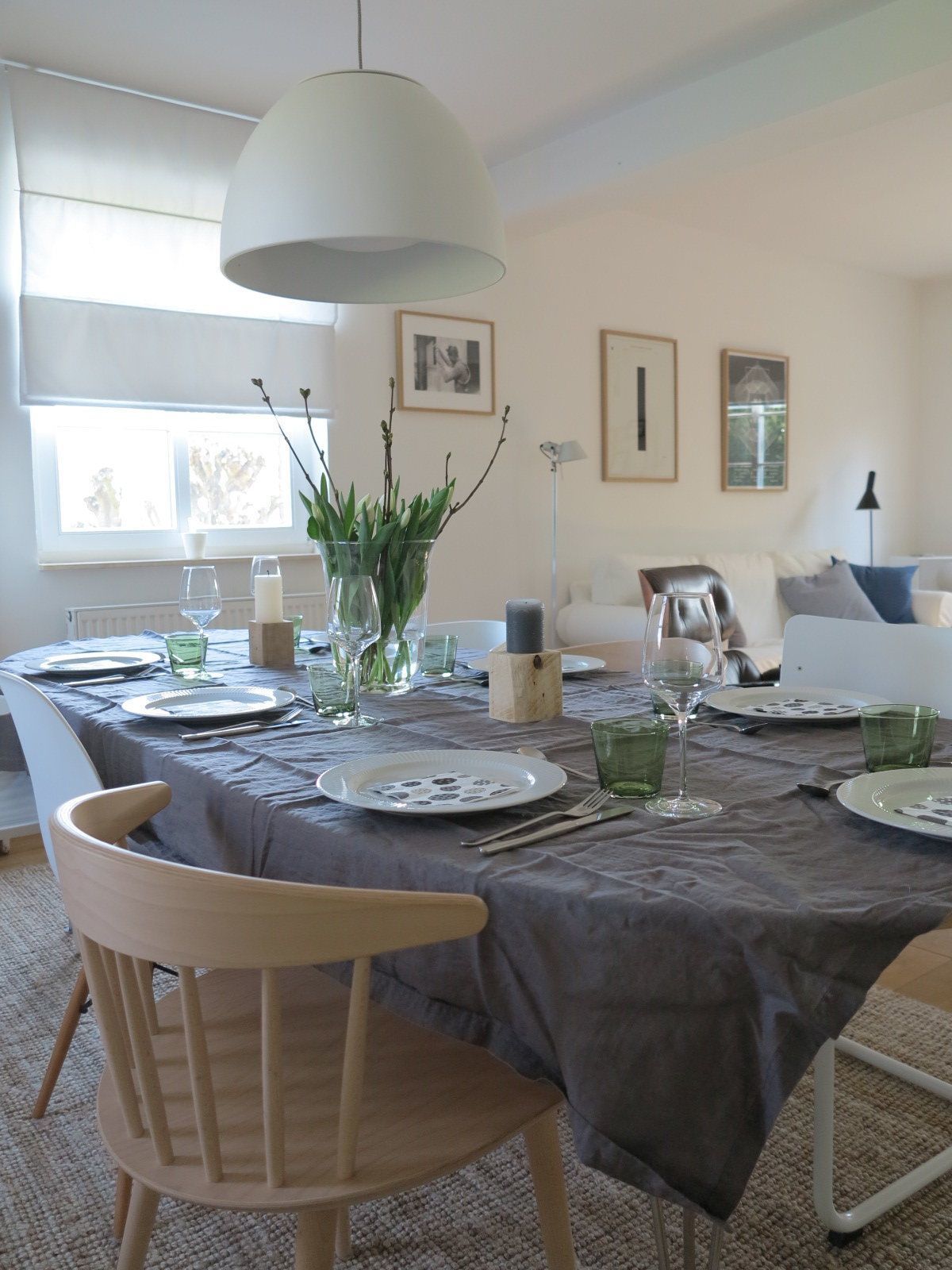 Natürlich gibt es auch edle Varianten der österlichen Tischdeko: Zu gedeckten Farben, verschiedenen Hölzern und Naturtextilien kann man gut kleine Deko-Osterhasen oder interessant gemusterte Eier, zum Beispiel von der Wachtel, kombinieren. Auch einzelne Federn sehen toll aus!