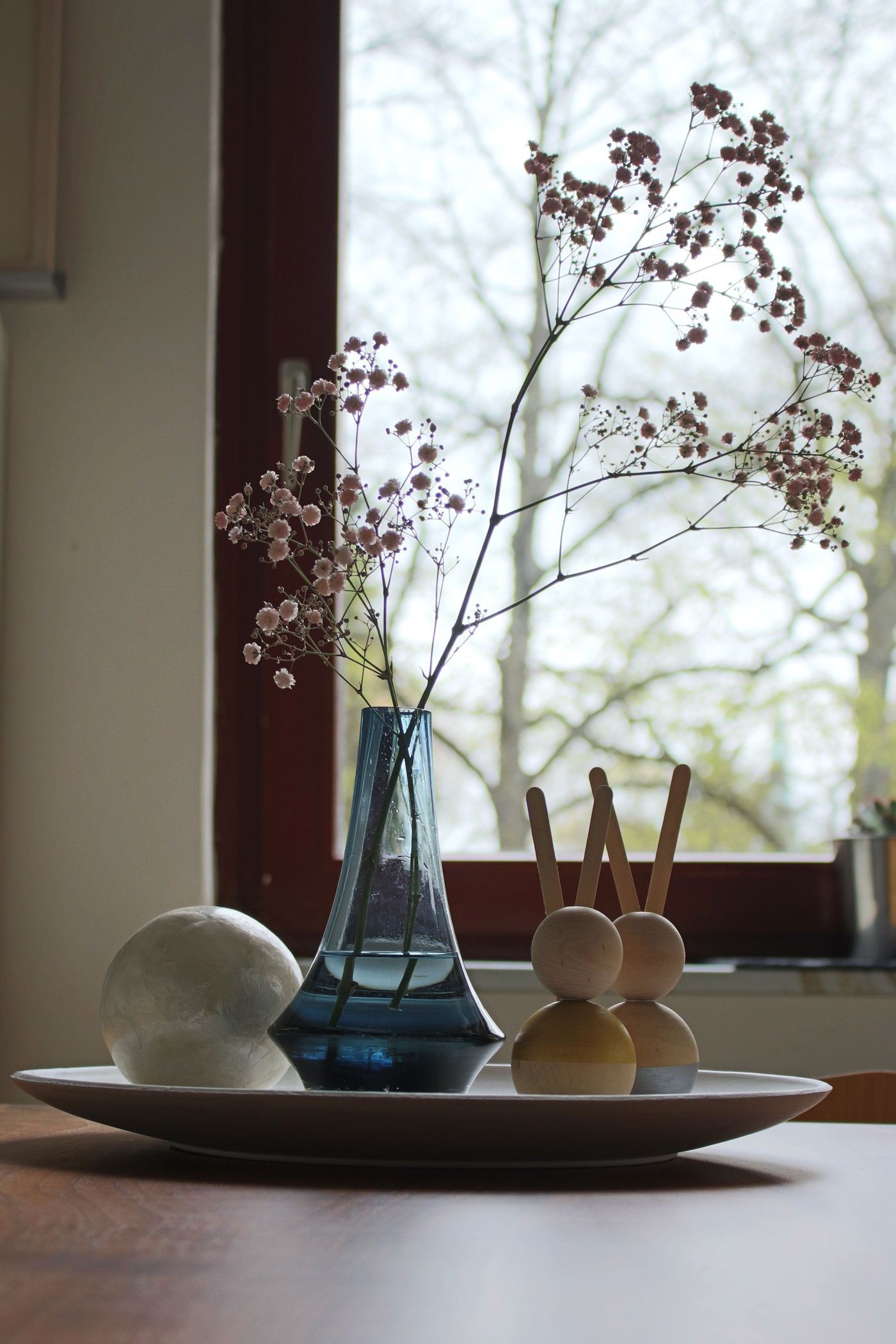 Frische Blumen dürfen auf dem Ostertisch nicht fehlen. Am besten greift man zu den Schnittblumen, die gerade beim Blumenladen in der ersten Reihe stehen: Tulpen, Narzissen und Hyazinthen. Die Frühlingsblumen am besten passend zu den Farben der restlichen Deko wählen: Vielleicht passen ja die selbst gefärbten Eier dazu? In mehreren schlichten Glasvasen sehen die Frühlingsblumen auf dem Ostertisch besonders schön aus.
