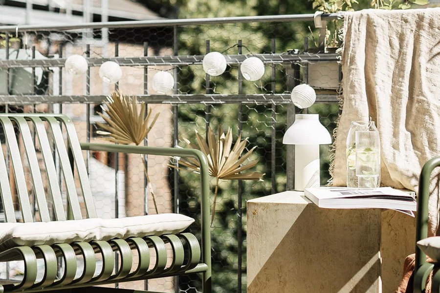 Ich versüße mir mit Glühweinmomenten auf dem Balkon dieses Jahr den Winter. Und da nicht jeder eine Steckdose parat hat, trägt die mobile PC-Portable-Tischleuchte von HAY wunderbar zur gemütlichen Beleuchtung bei. Lichterkette, Kerzenhalter, kuschelige Decken und süße Deko dürfen bei dem Ambiente natürlich auch nicht fehlen!