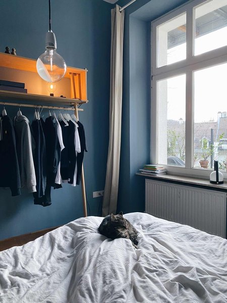 Es sollte alles stimmig, nicht zu überladen und am Ende trotzdem gemütlich sein. Wohnzimmer, Küche und Flur würde ich zum Beispiel als komplett bezeichnen. Aktuell verändere ich das Schlafzimmer. Dort habe ich zum ersten Mal in der Wohnung etwas mit Farbe gemacht und das komplette Schlafzimmer Graublau gestrichen. Obwohl ich sonst immer ein Verfechter von weißen Wänden war, bin ich jetzt absolut begeistert von dem Ergebnis und froh, dass ich mich getraut habe.