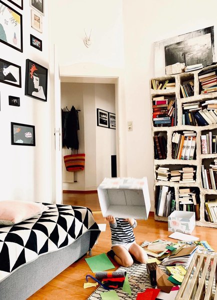 „Die etwas ‚ältere Dame‘ ist 1905 erbaut worden“, sagt Eva (38) aka @imraum über das Mehrfamilienhaus, in dem sie mit ihrem Mann und ihrem 3-jährigen Sohn wohnt. Die 120 qm große Altbauwohnung befindet sich in Mannheims schönem Stadtteil Lindenhof. Die vier Zimmer gleichen einer kleinen Schatzkammer im Blütenrausch: eine alte Holzflügeltür, floraler Stuck, allerlei liebevoll ausgewählte Flohmarktfunde und Reiseerinnerungen, eigene Entwürfe sowie unzählige Girlanden, Kränze und Blumen.