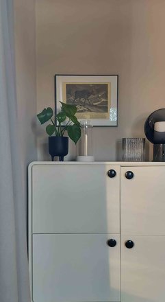 Noch mehr mag ich den weißen 60er-Jahre-Schrank von meiner Schwiegermutter. Er ist schon wirklich oft mit uns umgezogen und die rechten Türen sind leider verzogen, aber ich finde ihn nach wie vor superschön! Außerdem habe ich das Gefühl, sie hätte ihn mir nicht vermacht, wenn sie mich nicht mögen würde. Und das ist bei Schwiegermüttern ja mal wirklich wichtig!
