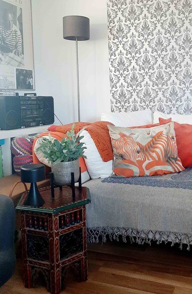 Ich liebe es, auf Flohmärkten Individuelles zu entdecken. Dort habe ich schon Spiegel und diverse Deko gekauft. Aber ich mag auch Orientalisches, wie beispielsweise den handgeschnitzten Beistelltisch im Wohnzimmer.
