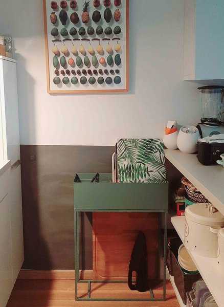 Jeden Samstag stellt Bettina alle ihre Zimmerpflanzen ins Wasserbad. Die grüne Plantbox in der Küche, angelehnt an das Modell von ferm LIVING, war ein glücklicher Spontankauf.