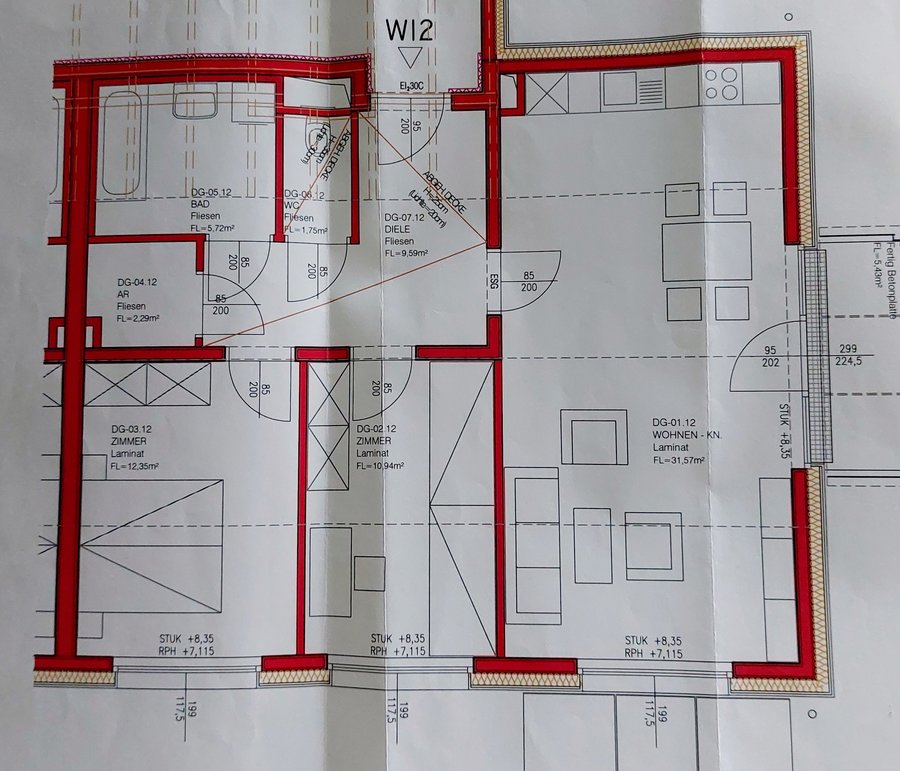 Das ist der Grundriss von Bettinas 80 qm großer Dreizimmerwohnung mit Ostbalkon.
