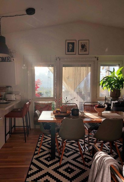 Eingebettet zwischen den Alpen liegt das liebevoll gestaltete Zuhause von Bettina alias @BARISTA . 2010 kehrte Bettina nach einigen Jahren in München in die Nähe ihres österreichischen Geburtsorts nach St. Michael im Kärnter Lavanttal zurück. Seitdem wohnt sie mit ihrer Tochter Ella in einer 80 qm großen Mietwohnung, die sie mit besonderen Erinnerungsstücken von Reisen, mit individuellen Flohmarktfunden und lustigen Tierprints in ihren persönlichen Wohlfühlort verwandelt hat …