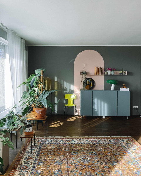 Unweit ihrer Geburtsstadt Frankfurt am Main lebt Barbara (54) aka @nah_am_wasser seit knapp drei Jahren mit ihrem Partner Daniel in Hanau. Das klassische Zweifamilienhaus in unmittelbarer Mainlage und mit idyllischem Flussblick bewohnen die beiden derzeit zu zweit, wobei jeder seine eigene Etage hat. Unter dem Dach befindet sich eine hübsche Ferienwohnung, die gelegentlich vermietet wird. „Ich kann alles gestalten, wie ich es möchte. Ich wusste gar nicht, wie viel Freude ich am Einrichten und Malern habe! Eine neue Welt hat sich für mich geöffnet“, freut sich Barbara.