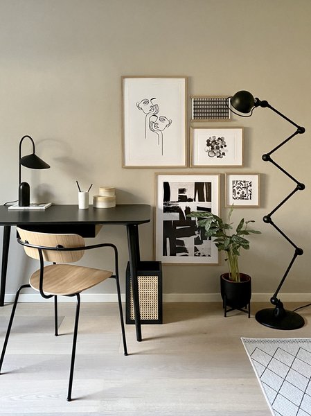 Gästezimmer und Homeoffice: Das Schlafsofa ist von Innovation, der Schreibtisch von MYCS, die Stehleuchte von Jieldé und die Tischleuchte von ferm LIVING.
