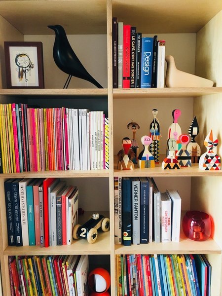 Die beiden Vögel und die Wooden Dolls im Regal und auf dem Corniches-Wandregal sind von Vitra.