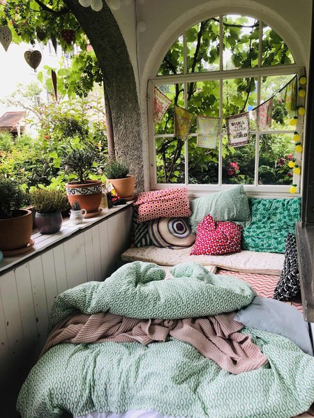 Auf dem kuscheligen Balkon dürfen Tamaras Mädels auch mal eine kleine Übernachtungsparty feiern. Ansonsten genießt Tamara dort jeden einzelnen Sonnenstrahl mit einem guten Buch und manchmal auch mit einem Aperol Spritz.