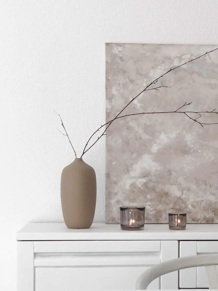 Ich habe eine große Affinität zu Vasen und Kerzenständern und arrangiere sie immer wieder in Gruppen oder als Solitär im ganzen Haus. Meine Sammlung wächst stetig, sodass ich auch immer mal wieder aussortieren muss.