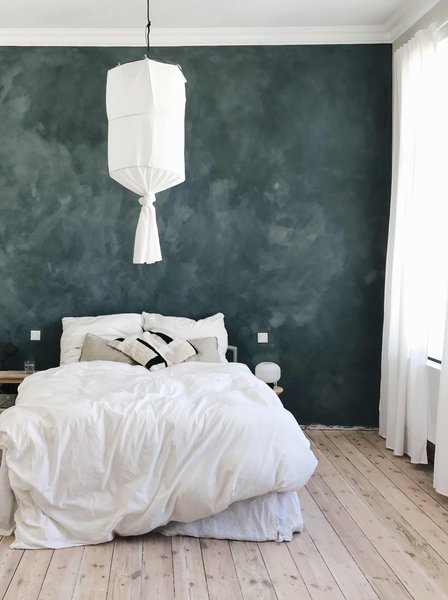 Das Bett stammt noch aus der Studienzeit. Da es Izabella nicht mehr so gefällt, kaschiert sie es mit einer schönen Leinenhusse. Die DIY-Hängeleuchte über dem Bett ist eine Hommage an die AY illuminate.