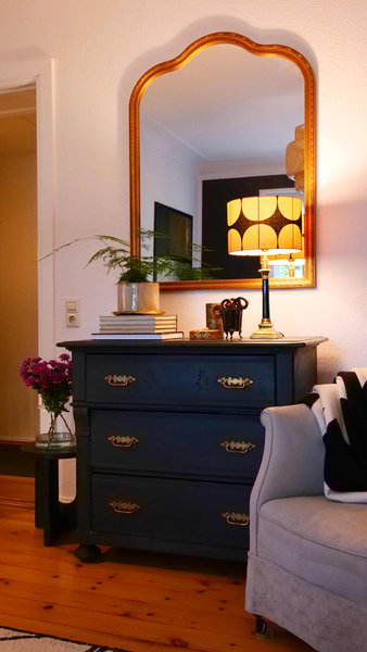 Ich versuche mich nicht zu sehr von Trends beeinflussen zu lassen. Das gelingt natürlich nur bedingt – aber ein individueller Stil ist mir wichtig. Selbst gemalte Bilder und Fotografien, aufgearbeitete alte Möbel, ein bisschen IKEA, einige Designerstücke und farbige Wände – das ist mein Mix!