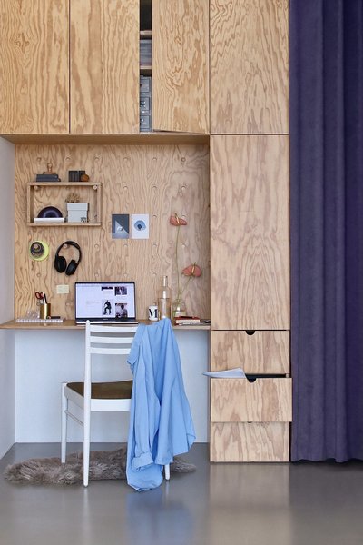„Die Fronten fast aller Einbauten sind aus Seekiefer. Seekiefer ist ein vergleichsweise günstiges Holz und ich mag die verspielte organische Struktur.“