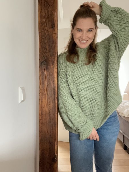 Unser Haus wurde 1920 gebaut und ist denkmalgeschützt. Es sieht von außen ziemlich klein aus, das sagen zumindest viele. Wir haben einige Wände rausgerissen und einen offenen Wohn-Ess-Bereich geschaffen, so wirkt alles etwas größer. Die Küche war damals hinten im Haus, im Durchgang zum ehemaligen Hof und Stall. Die Bodendielen, die alten Balken und einen Teil der Fenster konnten wir erhalten, das macht alles gemütlich und ich liebe den Mix aus Alt und Neu.