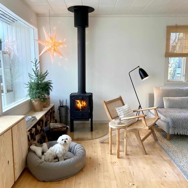 Skandinavisch gemütlich mit einem Hauch Industriecharme: Im Wohnzimmer und in der Küche des Ferienhauses treffen hölzerne Böden auf schwarze Interior-Elemente.