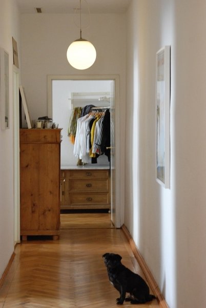 Ich lebe gemeinsam mit meinem Freund, unserer vierjährigen Tochter und den beiden Möpsen Hugo und Frieda in einer Dreizimmerwohnung in der Münchner Isarvorstadt. Wir haben 86 Quadratmeter zur Verfügung. Allerdings geht ein Teil für unseren 14 Meter langen, schmalen Flur drauf. Als ich 2007 die Wohnung übernahm, witzelte mein Freundeskreis, ob ich dort Balletttraining abhalten wolle. Eine Kegelbahn war auch im Gespräch. Als Rennstrecke für die Hunde und als Spielplatz für unsere Tochter taugt er aber dennoch.