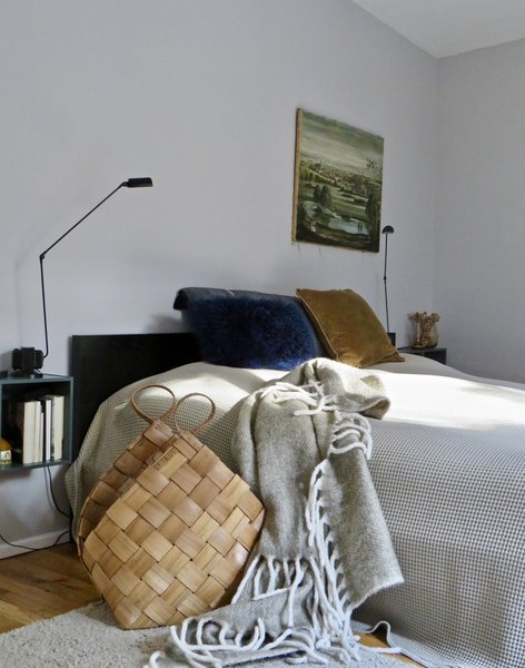 Auf Patricias Lieblingskommode steht eine Tischleuchte von House Doctor. Das IKEA-Bett rahmen zwei Daphine-Tischleuchten von Lumina. „Kleider und Schuhe haben wir in Einbauschränken im Hauswirtschaftsraum verstaut, da ich keine Schränke im Schlafzimmer haben wollte und auch der Flur möglichst frei sein sollte“, erklärt Patricia.