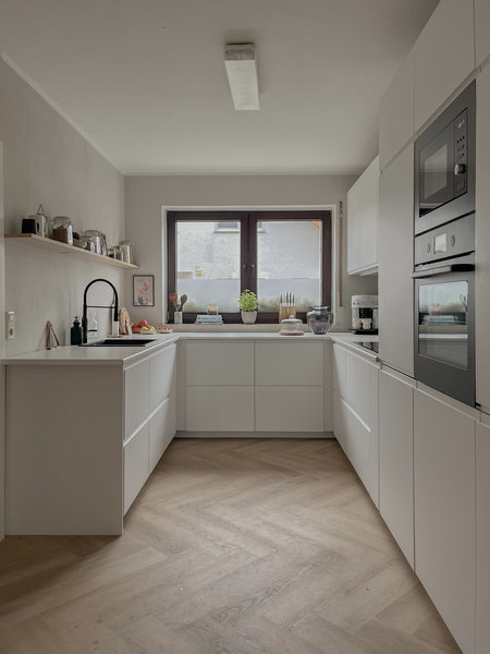 „Wir haben auf beiden Etagen Fischgrätvinyl verlegt und lieben den warmen Holz-Look!“