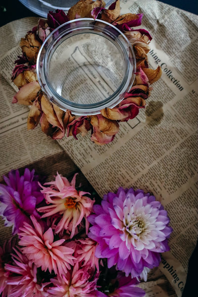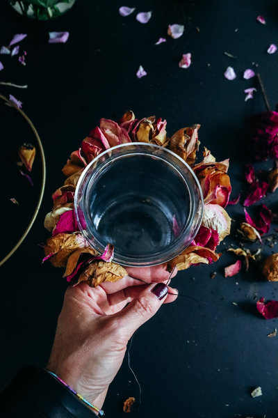 Schnell gemachte DIYs mit Dingen, die wir zu Hause haben – genau unser Ding! Deshalb hat die liebe Eva aka @imraum für uns einen Trockenkranz aus Rosenblättern gefertigt. „Ich darf mich immer im Garten meiner Schwiegermutter bedienen. Sie hat wunderschöne Rosen und Stauden“, erklärt Eva. Aber auch jeder, der eine bereits trockene Rose zu Hause hat, braucht nicht mehr als ein wenig Basteldraht und ein Einmachglas, um im Handumdrehen ein Blüten ummanteltes Windlicht zu haben. Also: Aufgefädelt – fertig – los!
