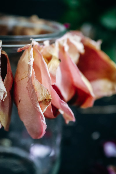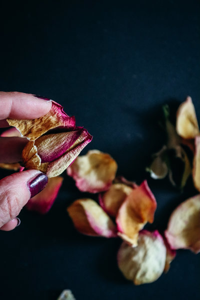 1. Getrocknete Rosenblätter von der Knospe lösen.