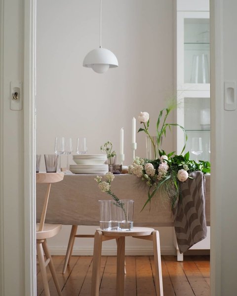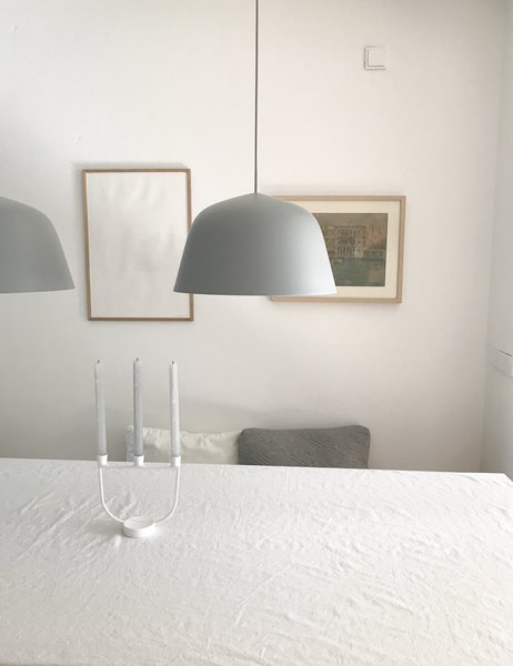 Skandinavisch-schlicht: Die Muuto-Ambit-Hängeleuchte (ab 169 €) aus dem Stockholmer Designstudio TAF Architects ist für ihre Geradlinigkeit bekannt. Sie ist handgefertigt und in verschiedenen Farben erhältlich. @doro_dot s Esstisch schmücken Ambit-Leuchten in zartem Grau, @Juniwelt greift auf die weiße Variante zurück.
