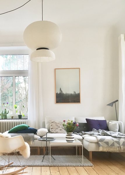 Die von Jaime Hayon entworfenen Formakami-Pendelleuchten (ab 179 €) sind an traditionelle asiatische Laternen angelehnt und bestehen ebenso wie diese aus elfenbeinfarbenem Reispapier, das durch schwarz gebeizte Eichenringe geformt wird. Während durch den geschlossenen, oberen Leuchtkörper indirektes, sanftes Licht dringt, sorgt der untere, offene Leuchtkörper für eine direkte Lichtabgabe. @HotchocolateDrop wählt für ihr Wohnzimmer die Formakami-JH5-Leuchte, @Pixi87 s Sofaecke beleuchtet die etwas kleinere JH4.