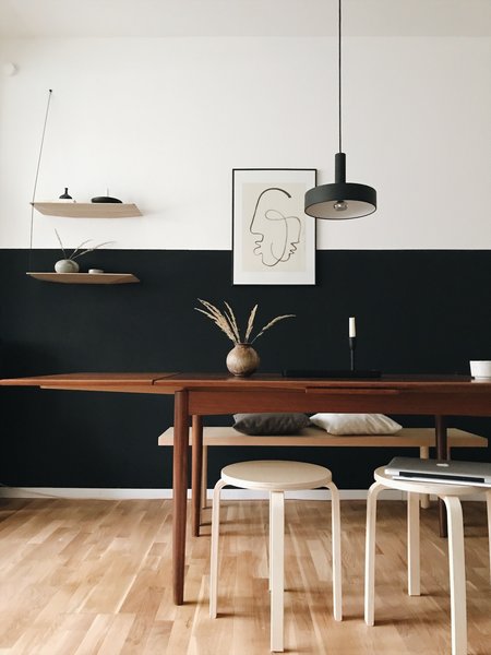 Die von Oliver Schick für GUBI gestaltete Ronde-Pendelleuchte (ca. 198 €) ist eine Neuinterpretation der klassischen Hängeleuchte, die sich durch ihre Vielzahl an Farbvariationen gut in verschiedene Raumkonzepte einfügt. @doro_dot s hübsche Sofaecke wird von einer weißen Ronde-Leuchte gekrönt, @dieartige hat sich in ihrem Essbereich für ein schwarzes Ronde-Duo entschieden.