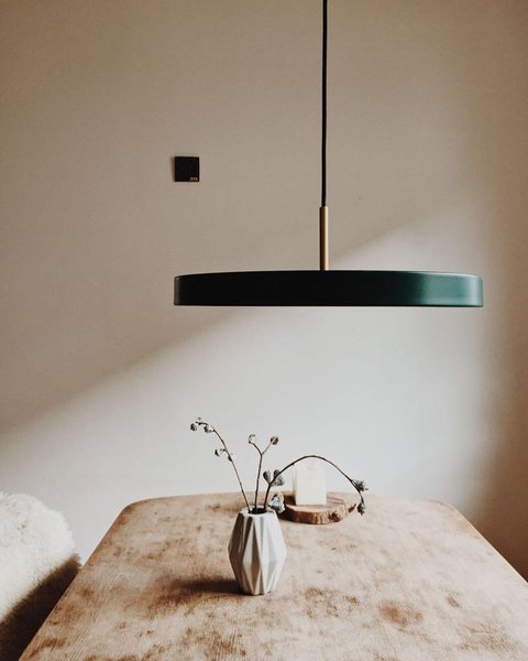 Der Record-Lampenschirm von ferm LIVING wie bei @fraeuleinfraenzchen ist Teil der Collect-Lighting-Pendelleuchten-Serie und lässt sich mit weiteren Schirmen sowie der Socket-Basis zu einer individuellen Pendelleuchte zusammenstellen. Die Asteria-Pendelleuchte von UMAGE wie bei @nininotschka ist eine minimalistische Leuchte im futuristischen Design, die besonders durch ihre filigrane Aufhängung und die große, kreisrunde Leuchtenform in Erinnerung bleibt. (Beide ab 165 €)