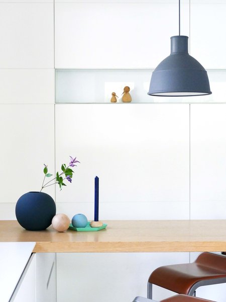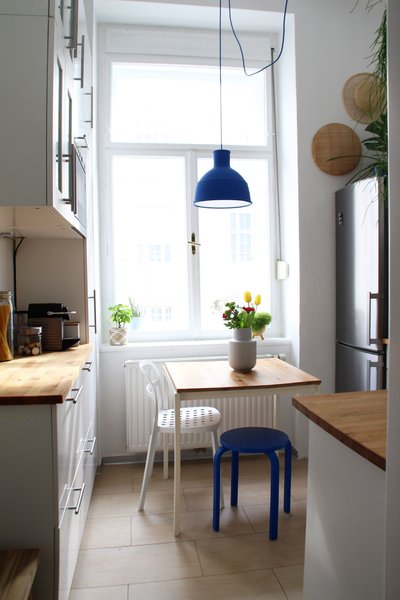 Die Unfold-Leuchte des dänischen Herstellers Muuto (ab 137 €) gleicht nur auf den ersten Blick klassischen Pendelleuchten im Industrial-Chic. Anders als diese ist sie nämlich nicht aus Metall, sondern aus weichem Gummi gefertigt, lässt sich zum Transport oder bei Bedarf platzsparend zusammenfalten. @Sigi H.ome und @Lumikello setzen mit ihren Unfold-Leuchten in Blau und in Grau einen spannenden Farbakzent in ihren weiß gehaltenen Küchen.