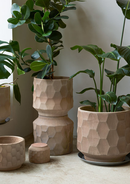 Flechtwerk und helles Holz: Broste Copenhagen sorgt mit Küchenhelfern aus Naturmaterialien für mediterrane Sommerfrische. Die sandfarbenen Gro-Übertöpfe von Kähler Design setzen durch ihre sechseckige Struktur Pflanzen besonders stylish in Szene.