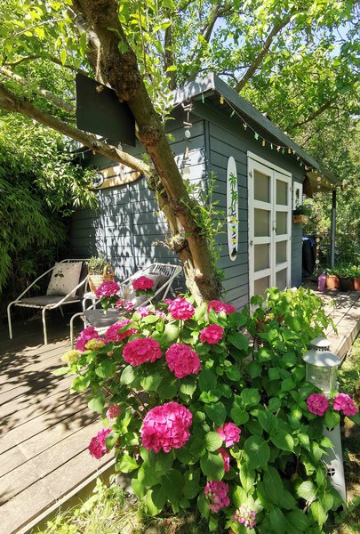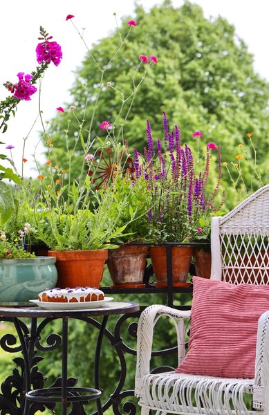 Es blüht und summt auf dem Balkon von @MiMaMeise , während sie ein Stück Lavendelkuchen genießt. Der Juli ist bei @EvaWaSa die pinke Zeit im Garten. Diese lässt sich am besten von der umwachsenen Bank aus genießen.