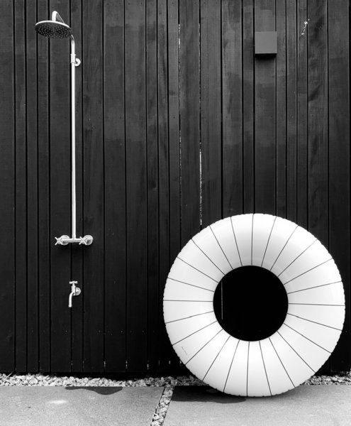 Gemütliche Ausblicke von der überdachten Terrasse von @Nordic_casa_ . Genau die richtige Abkühlung während der Hitzewelle im Juli: die Außendusche am Seehäuschen von @oceanside . Der Schwimmring ist übrigens von Petites Pommes.