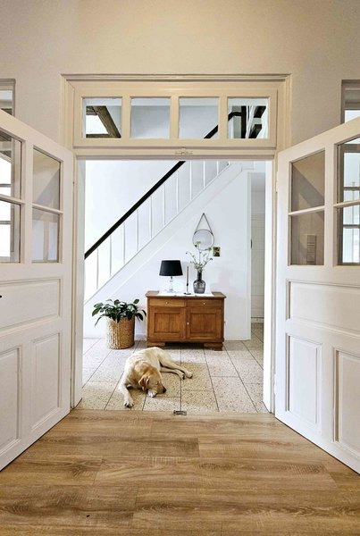 Von der Abendterrasse aus genießt @Howardsend den Blick aufs Haus in herrlichem Sommerlicht. Bei weit geöffneten Flügeltüren hat sich die Hündin von @suca einen kühlenden Platz mitten im Durchgang gesucht.