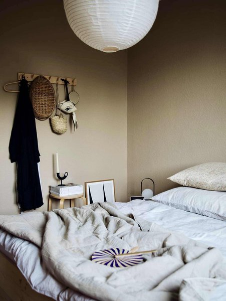 Die neue Küche mit IKEA-Korpussen hat @Sitzplatzbleib mit viel Herzblut selbst gebaut. Die Arbeitsplatte besteht aus Spanplatten, die mit einer Beschichtung aus Beton Ciré versiegelt wurden. So entsteht die betonähnliche Optik. Der erdige Farbton der Wände verleiht dem Schlafzimmer von @Smeti einen höhlenartigen Charakter.
